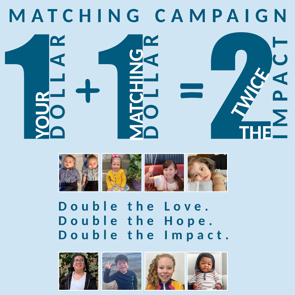 Thanks to generous donors, every dollar you give will be matched – up to $100,000. Your support brings hope to families and advances critical research.